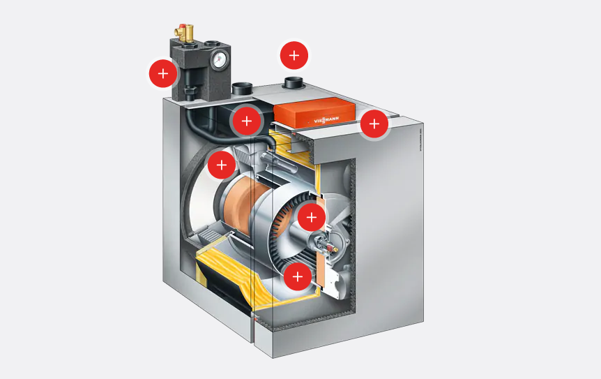 Aufgrund kompakter Baugruppen ist dieser Öl-Brennwertkessel äußerst platzsparend und kann praktisch überall aufgestellt werden |