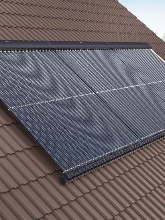 Der lageunabhängige und flexibel einsetzbare Kollektor ist für den Einsatz auf Ein- und Mehrfamilienhäusern konzipiert. Er verfügt über die automatische Temperaturabschaltung ThermProtect, die aktiv wird falls über einen längeren Zeitraum mit hoher Sonneneinstrahlung die Wärmeabnahme stagniert.