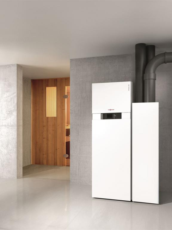 Die große Anzahl an Leistungs- und Ausstattungsvarianten der Systemkombination von Vitocal 222-S mit dem Wohnungslüftungsgerät Vitovent 300-F ermöglicht die bedarfsgerechte Anpassung der Haustechnikzentrale an den Energiebedarf des Gebäudes und eignet sich so besonders für den Neubau. Durch den modularen Aufbau und die hohe Anzahl an vorinstallierten Komponenten ist die Systemkombination einfach zu installieren undreduziert so die Kosten für die Montage.