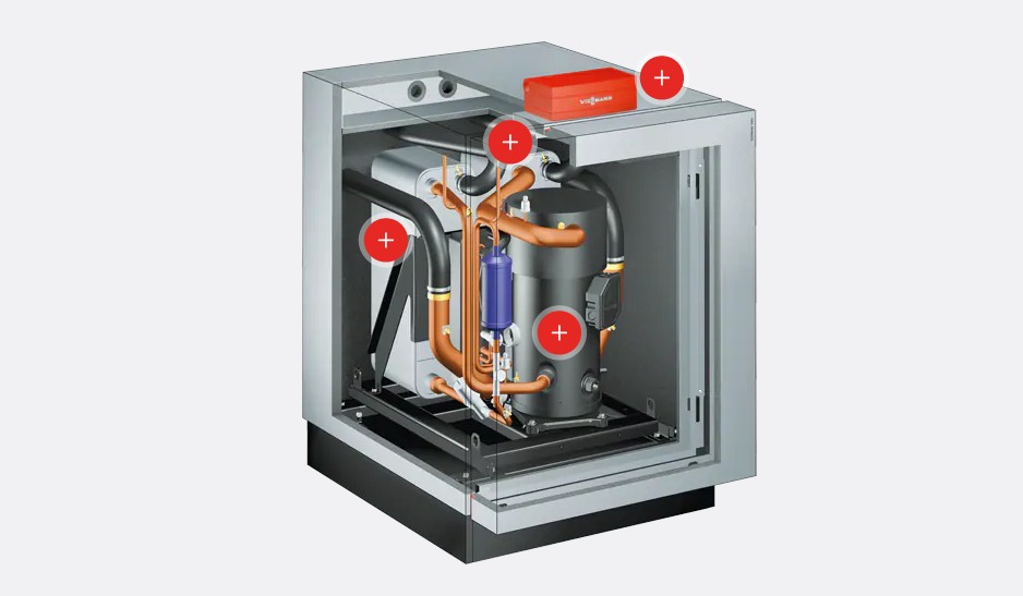 Niedrige Betriebskosten durch hohe Leistungszahlen: COP-Wert (COP = Coefficient of Performance) nach EN 14511 bis 5,0 (Sole 0 °C/Wasser 35 °C)